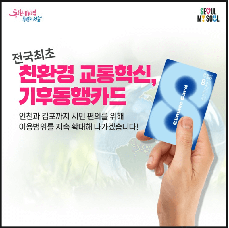 우리나라에서도 조금 더 자유롭게 대중교통을 이용할 수 있도록 하여 사회경제적 효과를 얻고 기후위기에 대응하는 발판을 마련하기 위해 기후동행카드가 출시예정입니다.